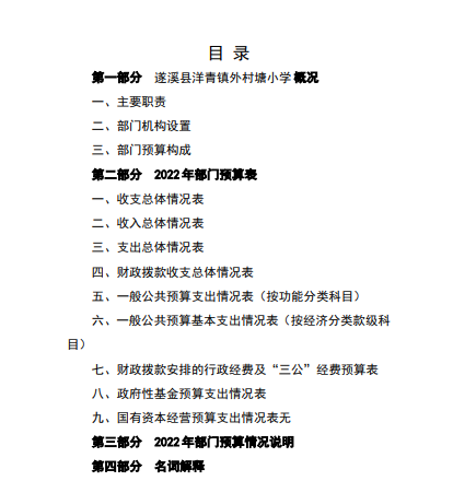 2022年遂溪县洋青镇外村塘小学部门预算 | | 作者: | 来源:本网 | 时间:2022-05-06 16:02:53 点击数:- 详情请见附件:2022年遂溪县洋青镇外村塘小学部门预算.pdf 【打印正文】