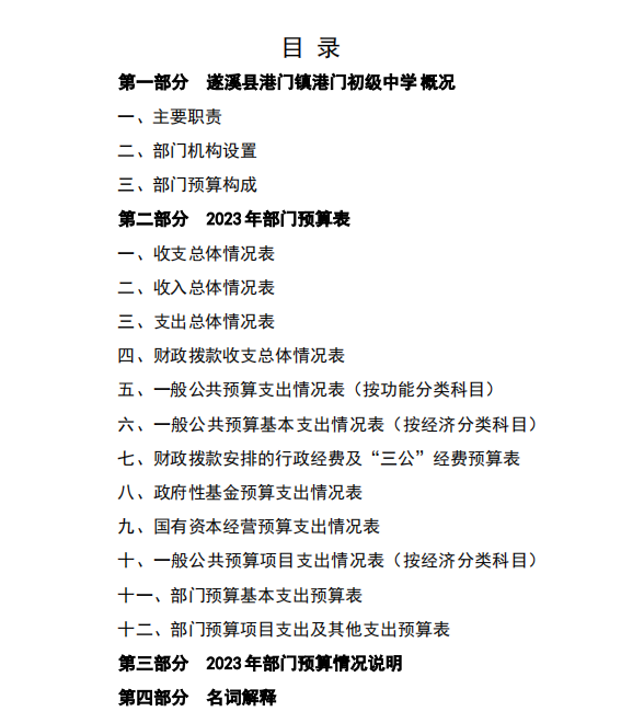 2023年遂溪县港门镇港门初级中学部门预算 | | 作者: | 来源:本网 | 时间:2023-04-11 10:12:36 点击数:- 详情请见附件:2023年遂溪县港门镇港门初级中学部门预算.pdf 【打印正文】