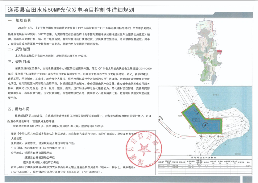 遂溪县官田水库50MW光伏发电项目控制性详细规划 | | 作者: | 来源:遂溪县自然资源局 | 时间:2020-12-11 17:44:07 点击数:- 遂溪县官田水库50MW光伏发电项目控制性详细规划.pdf 【打印正文】