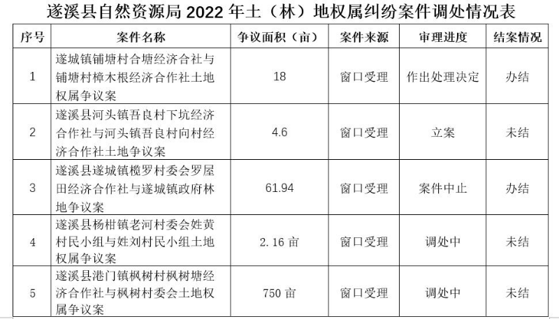 遂溪县自然资源局2022年土(林)地权属纠纷案件调处情况表