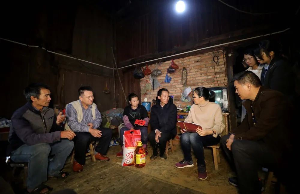 大山深处的夜晚静悄悄,零零星星的微光彰显几户人家的所在。刘喜一行走在山沟里,她一手持电筒,一手紧拽打狗棍,前往下一户贫困户进行夜访。白天,人们出去劳作,只有晚上才回到家中,刘喜便趁这时间到贫困户家中了解困难、宣传政策。