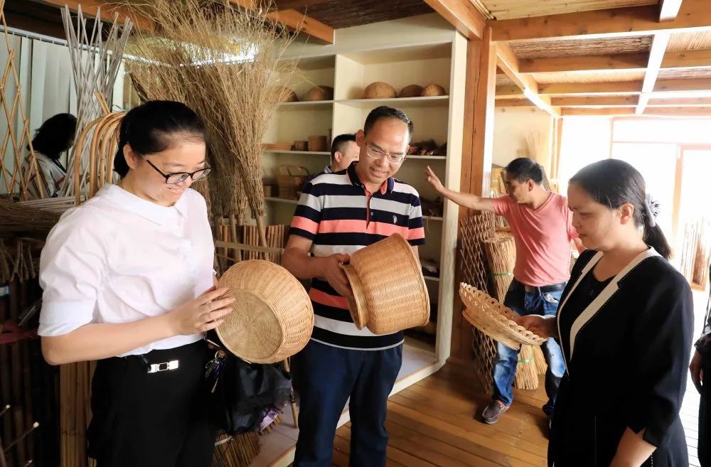 等领导在广东省遂溪县查看竹子制品。(谭凯兴 摄)
