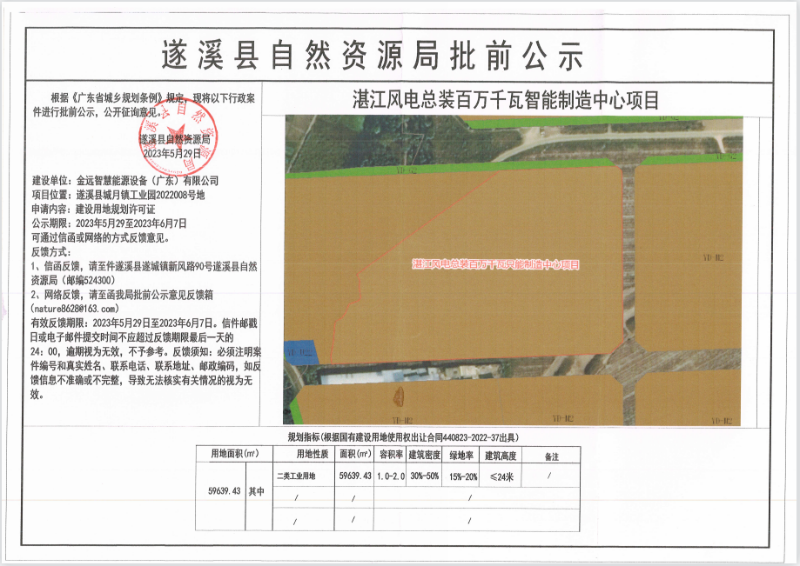 湛江风电总装百万千瓦智能制造中心项目建设用地规划许可证批前公示