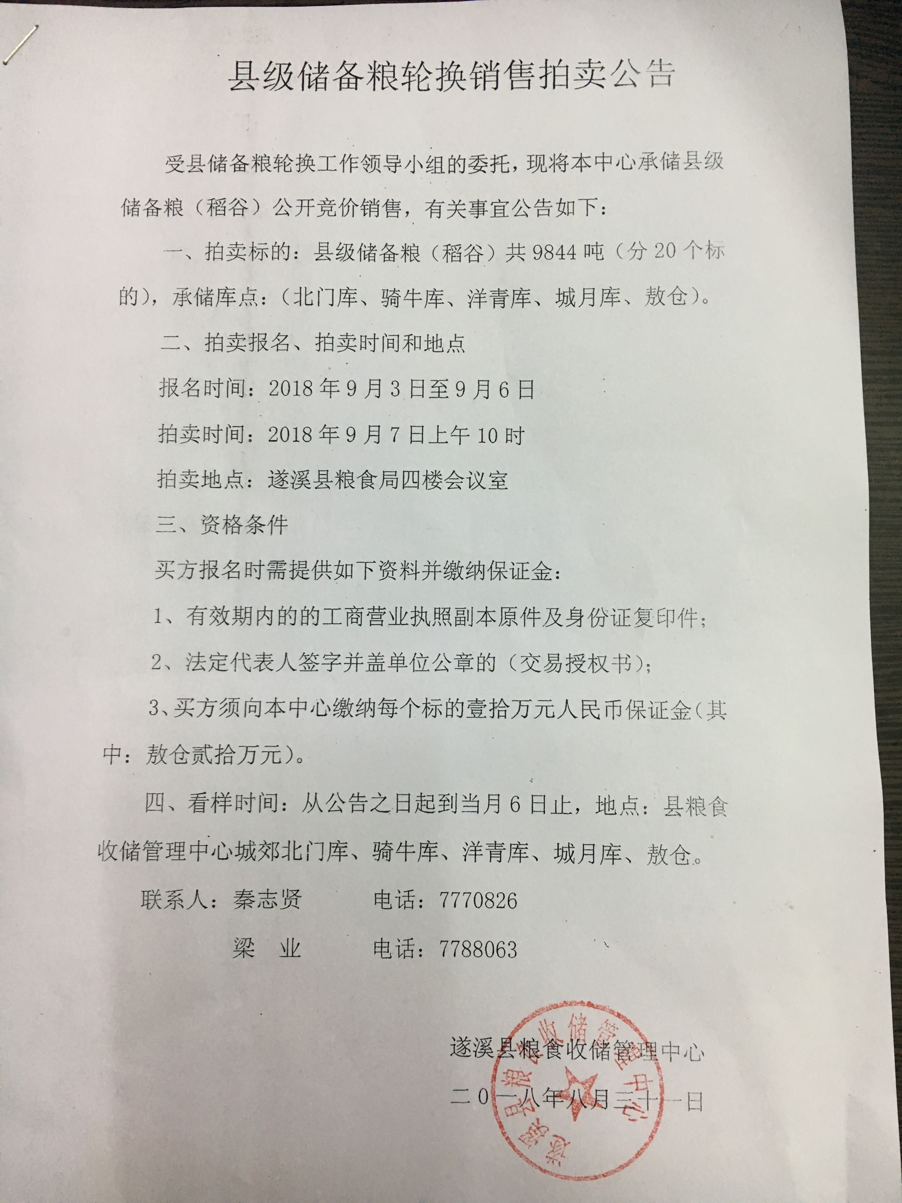 县级储备粮轮换销售拍卖公告