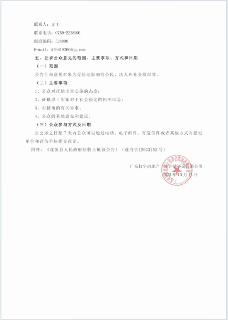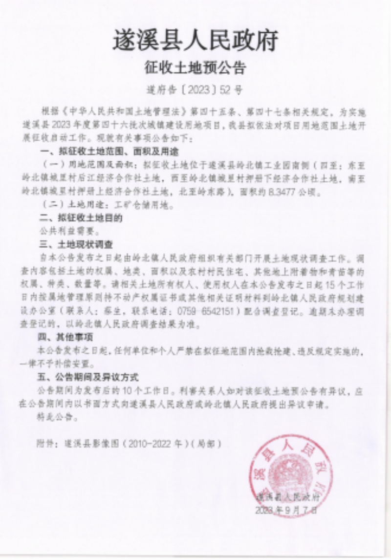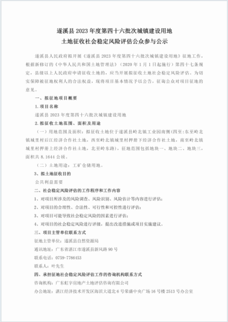 遂溪县2023年度第四十六批次城镇建设用地土地征收社会稳定风险评估公众参与公示