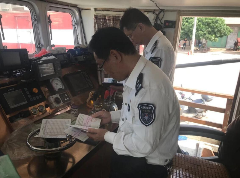 随后到江洪渔政中队实地登船检查了渔船的安全生产设施,检查渔船救生设备、消防设备、通导设备AIS和北斗终湍安装使用及开机情况,还对渔船安全检查手机APP及渔船进出港报告手机APP操作数据上传电脑系统等方面工作进行督导检查。