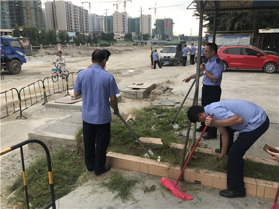 一、扎实开展责任区环境卫生大扫除。局领导亲自带队,干部职工充分发挥团结互助精神、不怕脏、不怕累,对沿街道杂物、牛皮癣、乱搭建杂物,乱拉广告、乱丢垃圾等,进行一次全面清理整治,收到较好效果。新的创文责任区之一河滨路由于连月来都在施工,杂草较多、垃圾多乱、尘土飞扬,干部职工运用锄头、耙子等工具,有的同志下手去清除杂草与垃圾,充分体现了共产党员不怕苦不怕累一切为了人民的党员精神。通过开展清洁大扫除行动,整个片区卫生面貌和监管秩序得到明显改观。