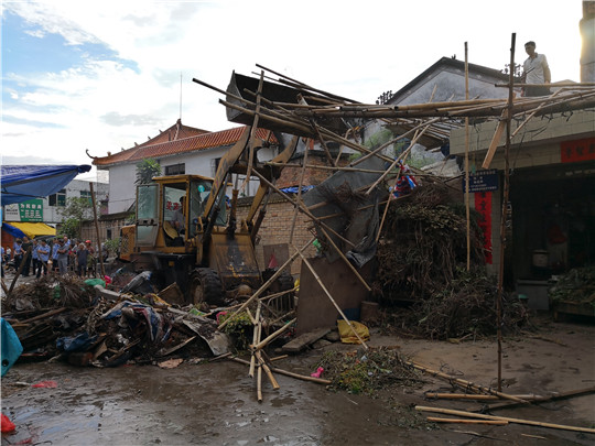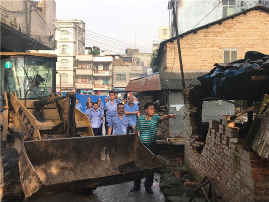 二是重拳出击,铁腕拆违。几天来,先后强行拆除遂城东圩市场内乱搭乱建违章建筑共32处(间),拆除违搭建面积共560多平方米,有力打击和震慑了违法占地行为。
