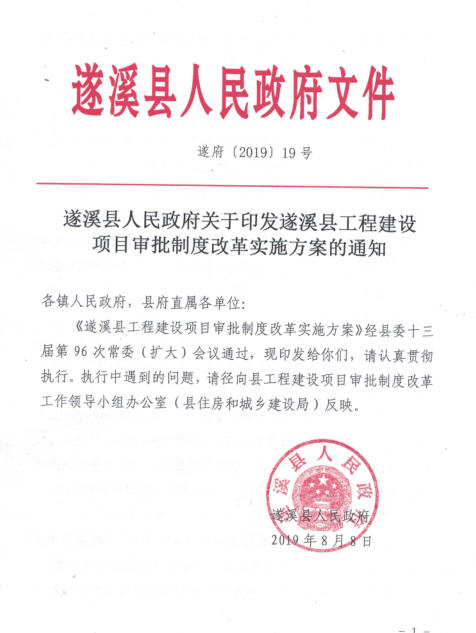 遂溪县人民政府关于印发遂溪县工程建设项目审批制度改革实施方案的通知(遂府〔2019〕19号) | | 作者: | 来源:本网 | 时间:2019-08-10 08:58:25 点击数:- 遂溪县人民政府关于印发遂溪县工程建设项目审批制度改革实施方案的通知(遂府〔2019〕19号) 【打印正文】