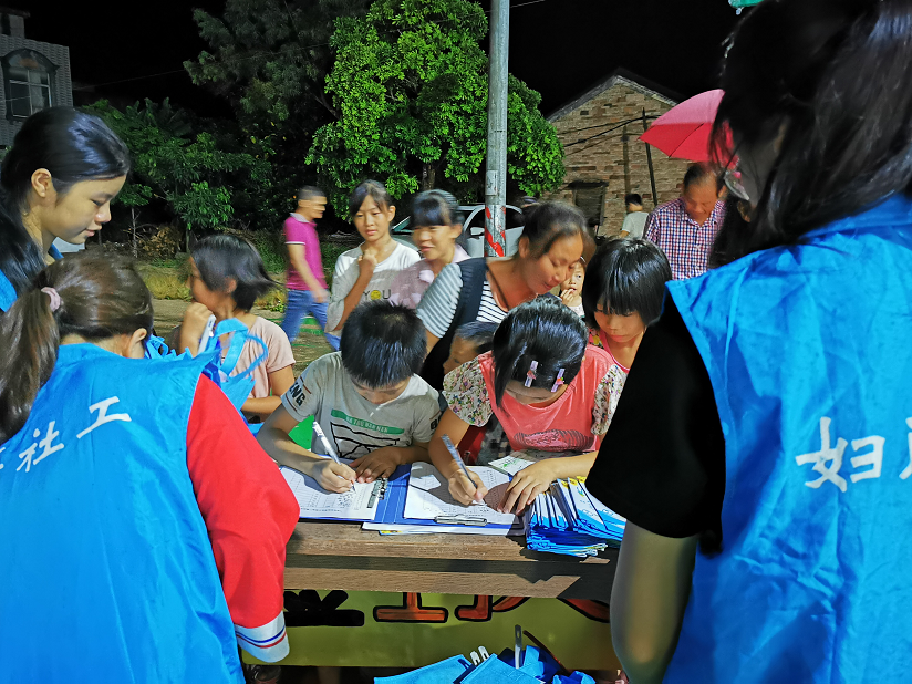 7月25日晚上,湛江市妇联、遂溪县妇联、广东省妇女维权与信息服务站(湛江分站、遂溪站)、中共草潭镇委、草潭镇人民政府在南洪村委会红莳棚村联合举办扫黑除恶暨创建平安家庭专题晚会,出席晚会的领导有市政协经济委副主任、南洪村精准扶贫精准脱贫驻村工作队常务副组长姚辉、草潭镇委副书记简英娣、草潭镇副镇长、妇联主席张美玲、红莳棚村支部书记叶理生、艾仔寮村支部书记庞马料、红莳地村支部书记劳立宏,还有冒雨前来观看的红莳棚村、艾仔寮村、红莳地大村、红莳地小村的500多名群众。