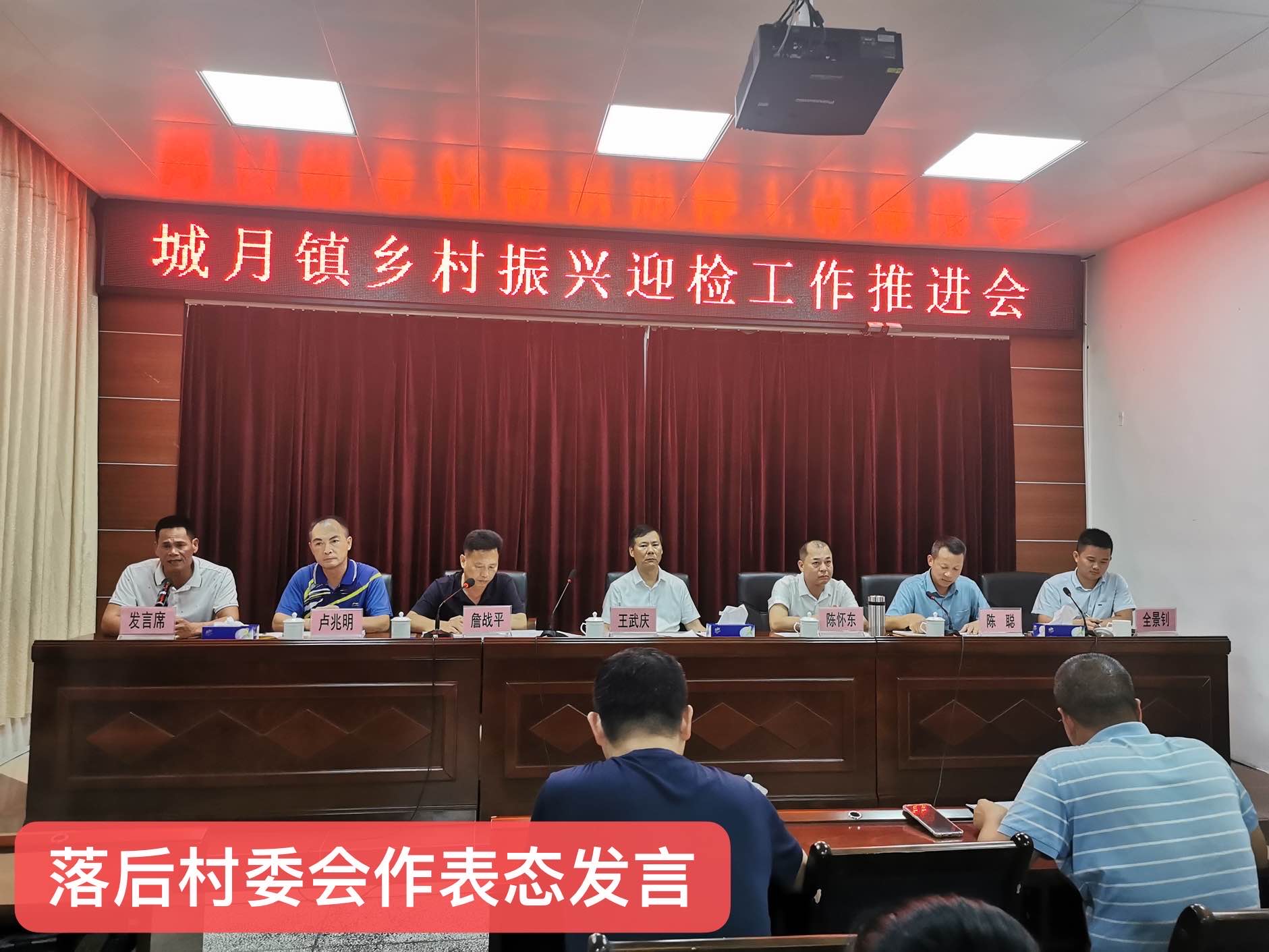 会上,镇党委委员、纪委书记全景钊通报镇联合督导组近期督导和整改验收情况,对思想不重视、屡督不动、整改成效不明显的扶良、潭葛村委会进行通报批评。要求扶良村、潭葛村两位支部书记针对乡村振兴工作落后的问题在会上作表态发言。接着,镇党委副书记卢兆明通报了2022年度广东省推进乡村振兴战略实绩考核市级模拟考核评估情况,并结合当前实际,讲解我镇迎检需要加以重视的事项。随后,镇党委副书记陈聪对乡村振兴迎检工作作进一步部署,并强调了当前我镇乡村振兴工作的重点重心。