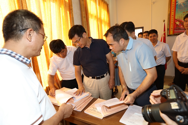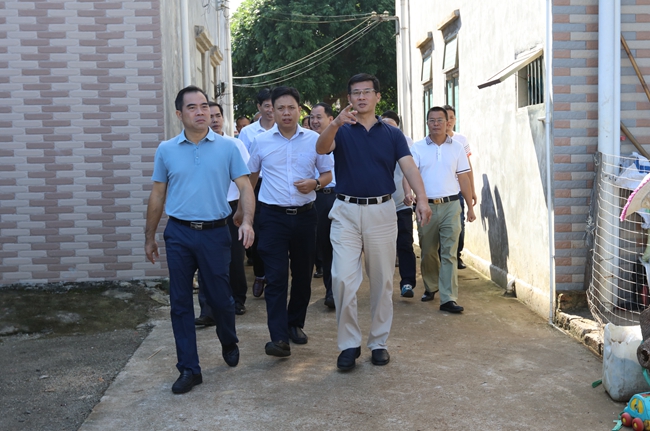 关勋强(右一)查看大家村开展新农村建设的进展情况