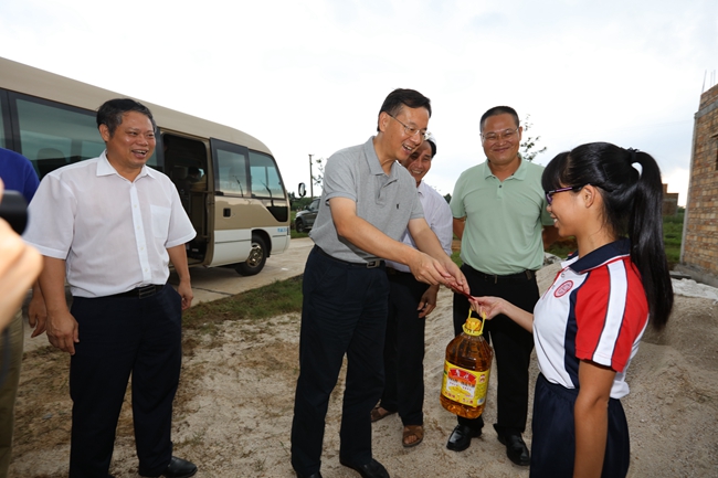姜建军在鍾力、陈才君、余庆创等领导的陪同下,首先看望了贫困户梁少卿一家,与其亲切交谈,询问她的生活学习情况。去年驻村工作队自筹资金启动助学帮扶项目,帮助梁少卿和妹妹圆了上学梦,今年初又启动危房改造工程,目前主体建筑已完工,梁少卿姐妹很快就能入住新房。对此,姜建军感到很欣慰,他鼓励姐妹俩要好好学习,自强不息,通过努力改变命运和生活现状,将来回馈社会。