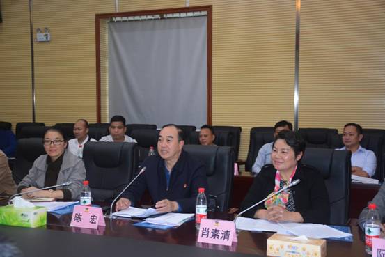 1018日,融安县委书记陈宏(中),政协主席肖素清(右),县委常委、副县长刘喜(左)出席考察调研座谈会,并进行了交流。