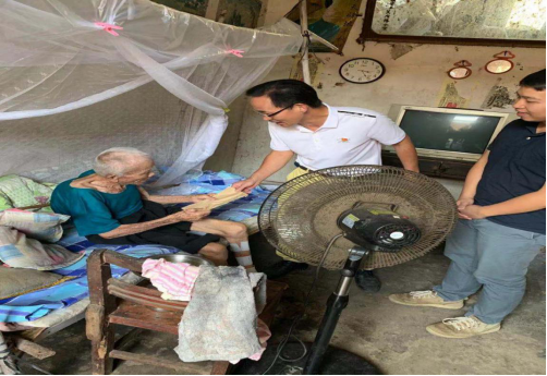 图2为吴华球主席慰问西埇村困难老党员叶南珠