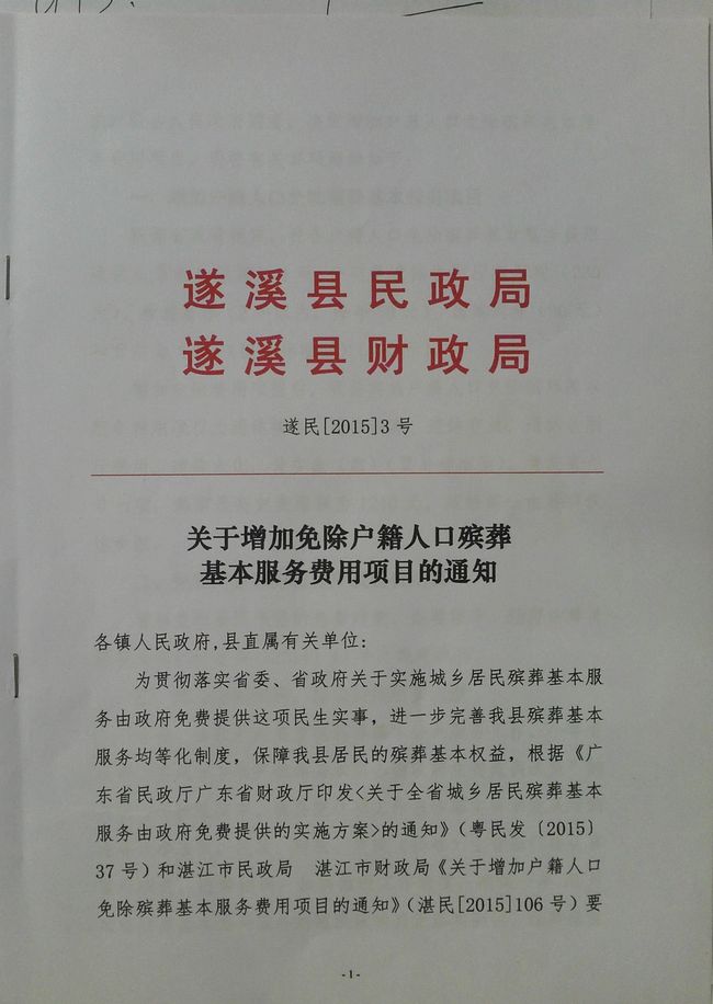 关于增加免除户籍人口殡葬基本服务费用项目的通知