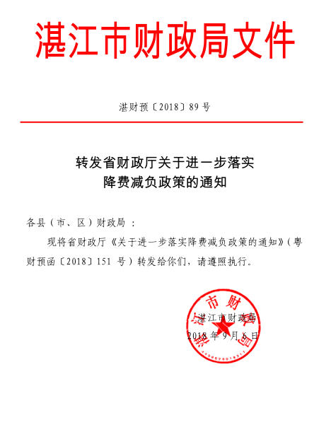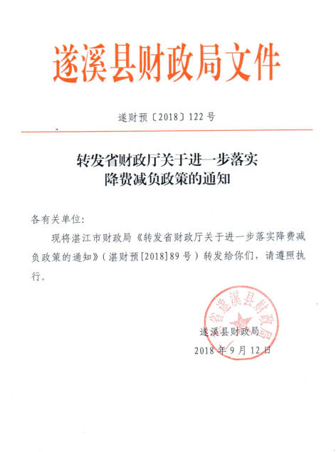 遂财预122号转发省财政厅关于进一步落实降费减负政策的通知