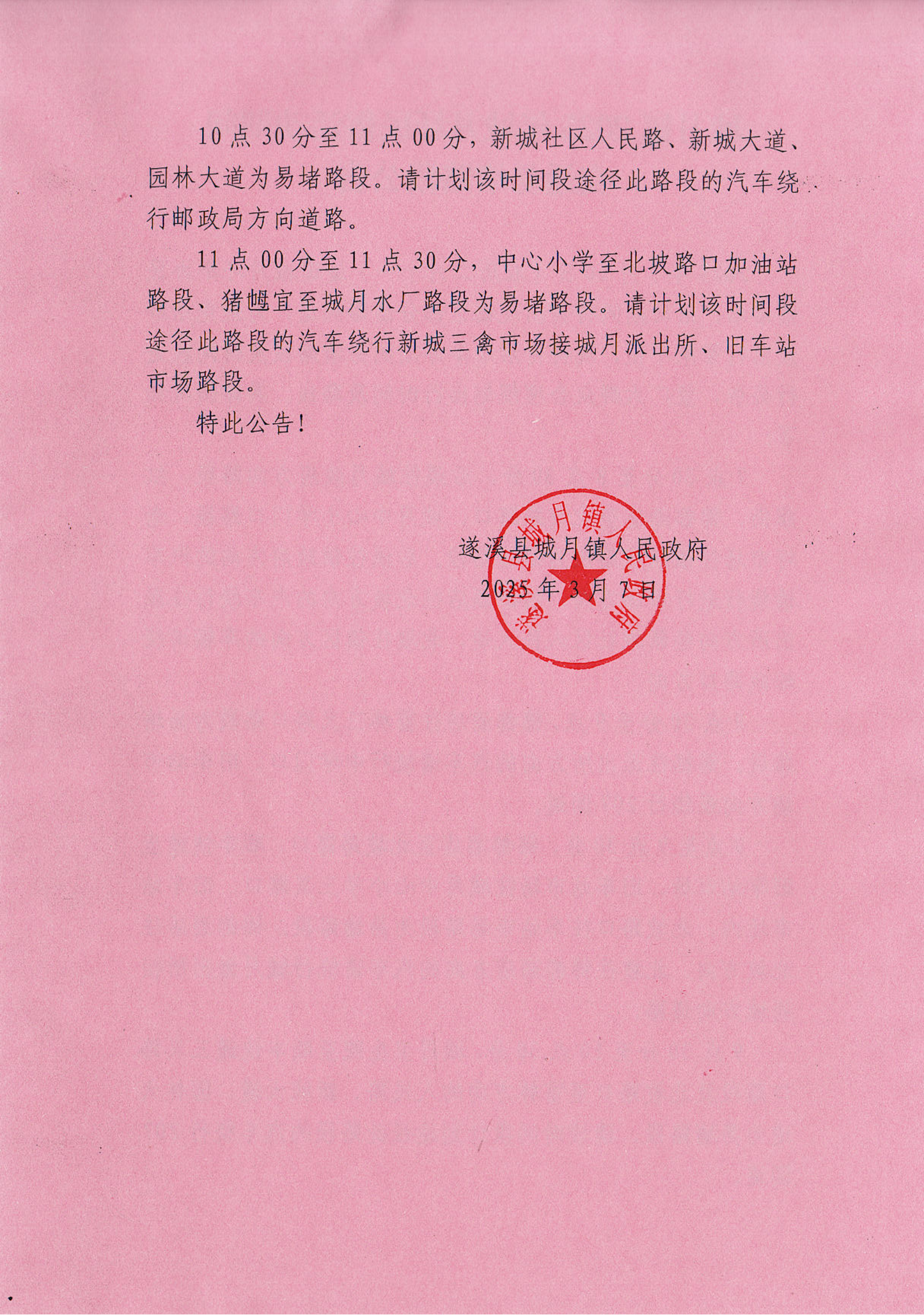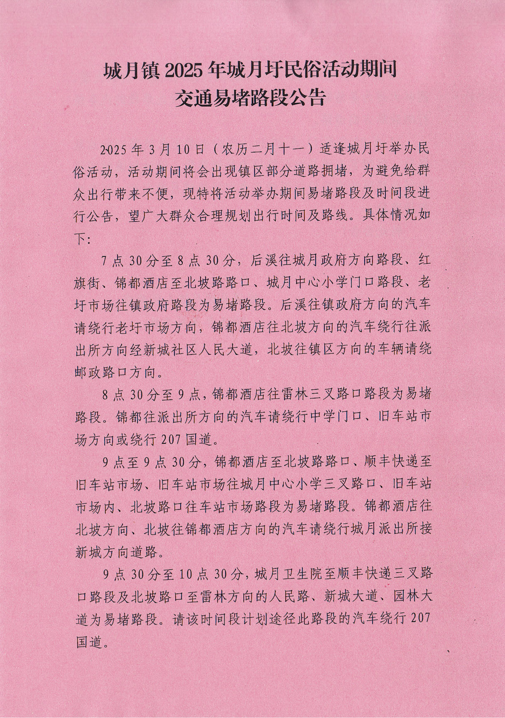 城月镇2025年城月圩民俗活动期间交通易堵路段公告