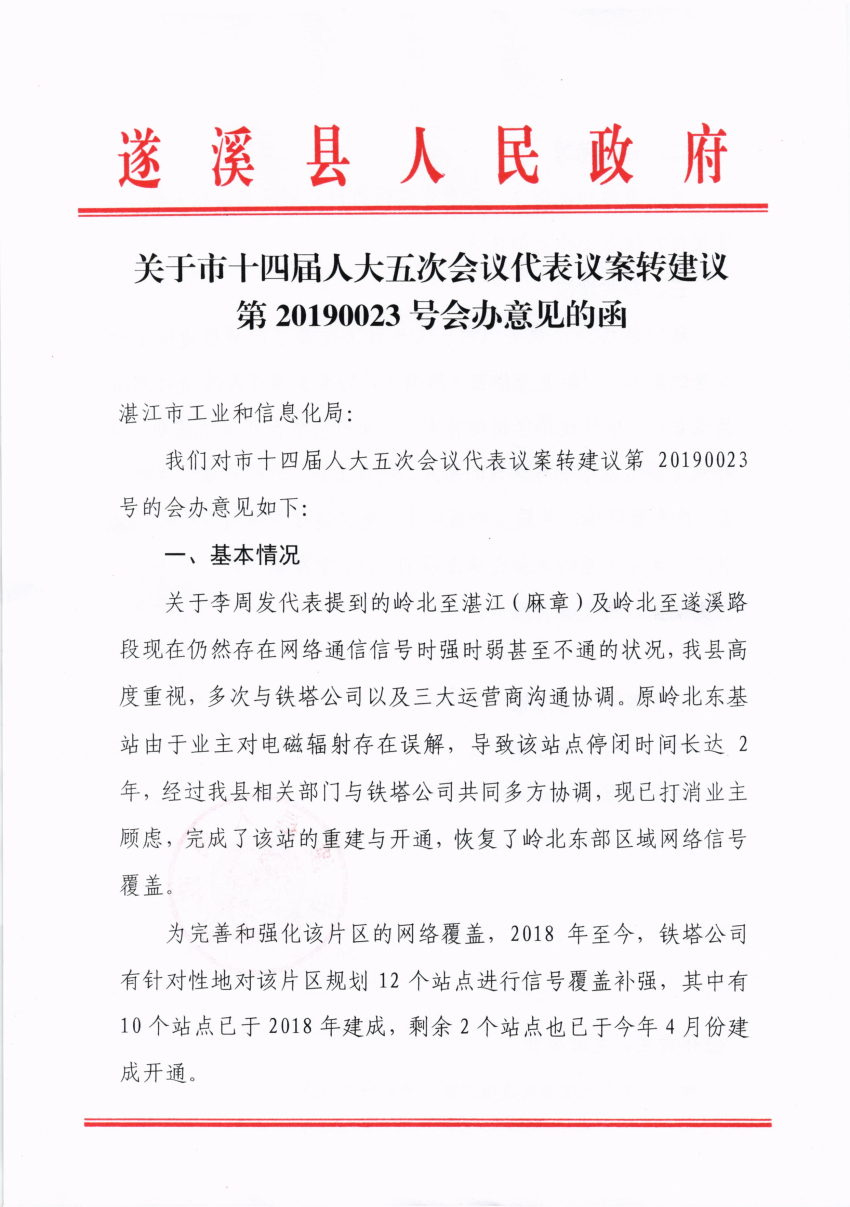 关于市十四届人大五次会议代表议案转建议第20190023号会办意见的函