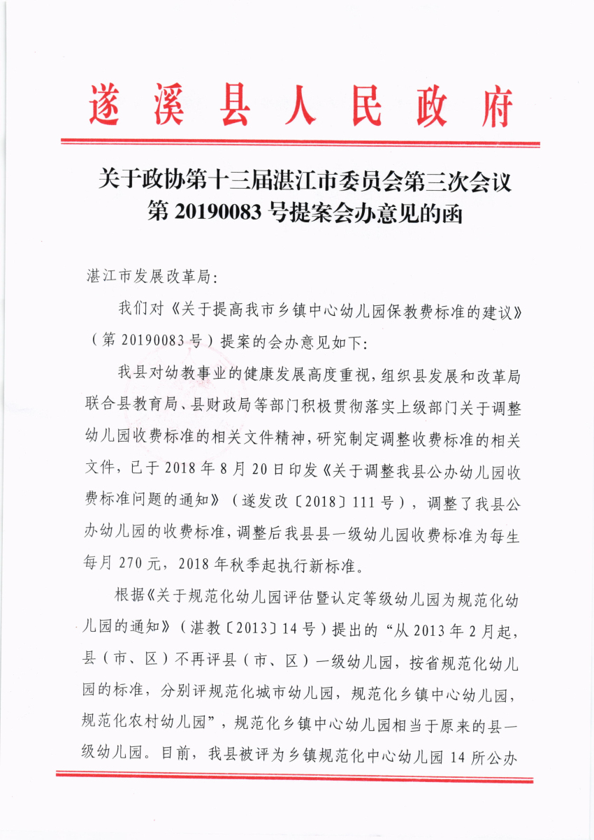 关于政协第十三届湛江市委员会第三次会议第20190083号提案会办意见的函 | | 作者:遂溪县政府督查室 | 来源:遂溪县政府督查室 | 时间:2019-05-23 15:02:05 点击数:- 【打印正文】